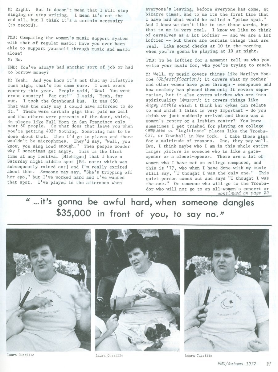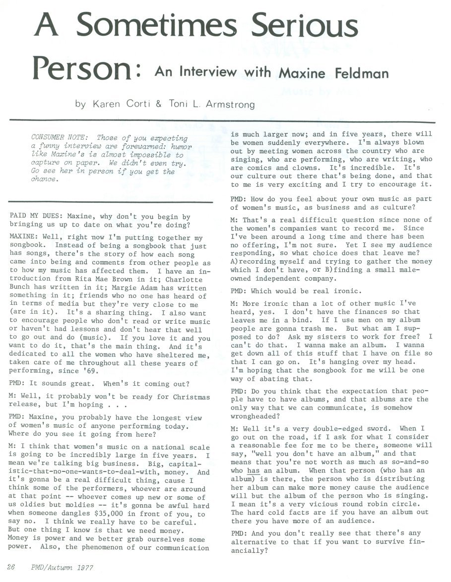 Maxine Feldman Interview in Paid My Dues, Fall 1977
