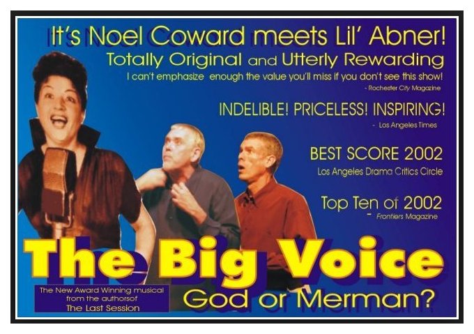 The Pink Files - Come Out, Come Out (2002) Out of Australia came the 2002 musical "The Pink Files," and its anthemic opening track was called "Come Out, Come Out." This is JD Doyle and this month on Queer Music Heritage I'm bringing you another show on Gay Musicals. It's been a couple years since the last one, and there's always lots to share with you. I'm starting off with a track from the musical by Steve Schlachlin and Jim Brochu, from their autobiographical show "The Big Voice: God or Merman." Here's "The Closet." The Big Voice: God or Merman - The Closet (2002)