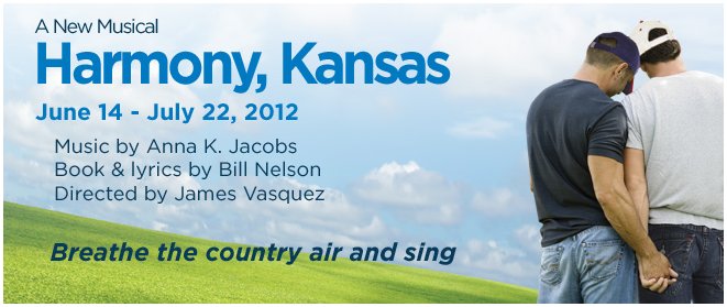 A show opened in San Diego in 2012, and it was called "Harmony, Kansas," written by Bill Nelson and Anna K. Jacobs. It deals with Heath, a farm boy who meets a lover on vacation in New York City. The lover, Julian, moves to Kansas and there are doubts about the relationship, due to their different backgrounds. The plot moves forward as Julian persuades Heath to join a gay chorus. Harmony, Kansas - It Can't Last / Singing With the Boys (2012)