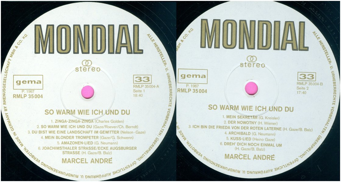And, this is the logical place to display the solo album of Marcel Andre,circa 1980s