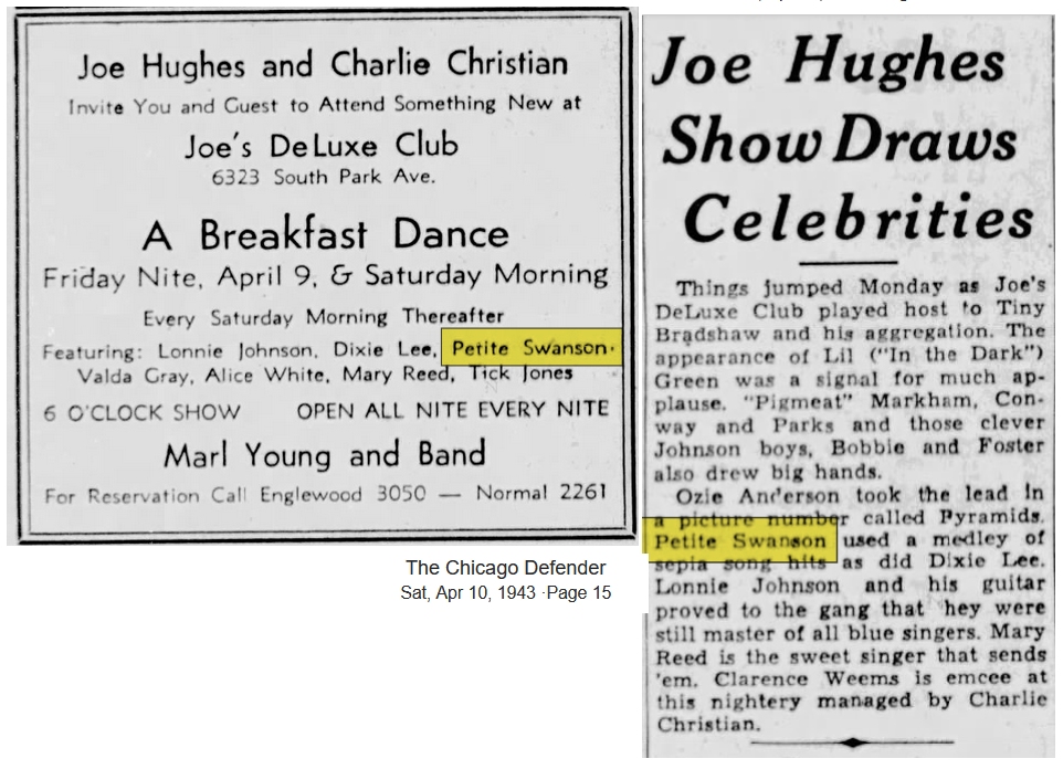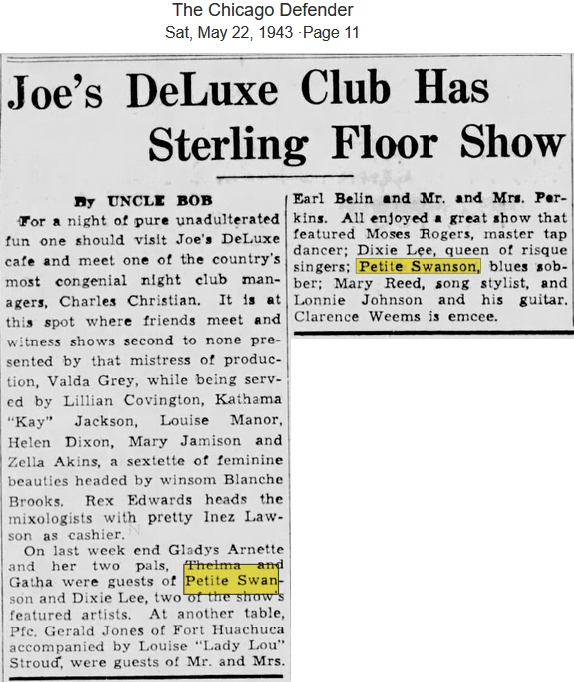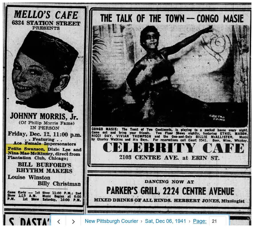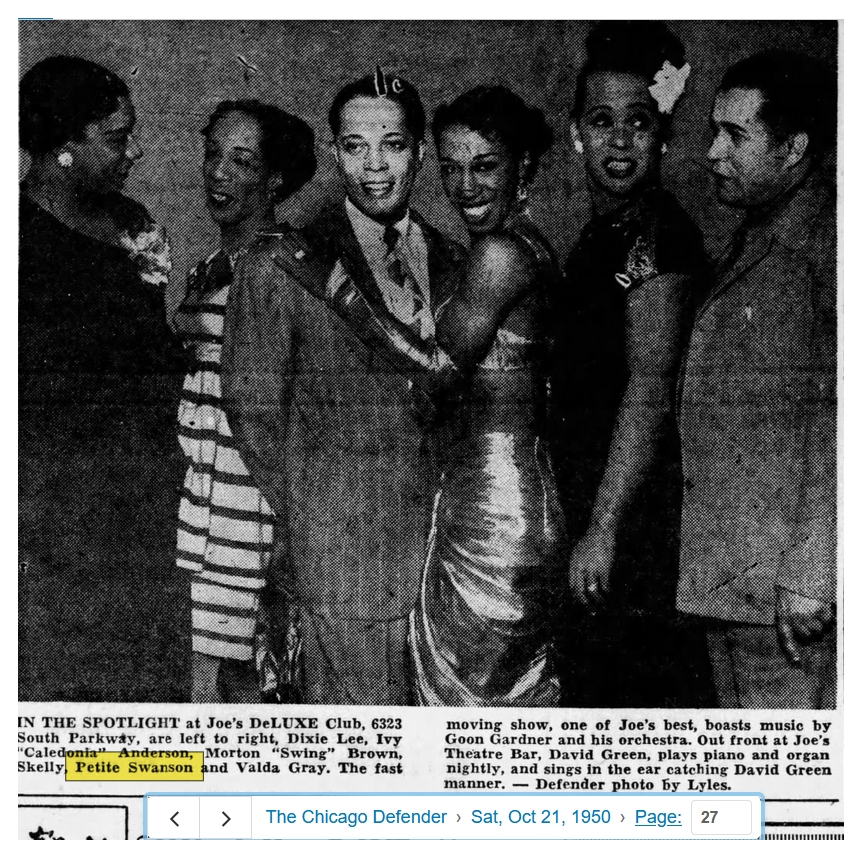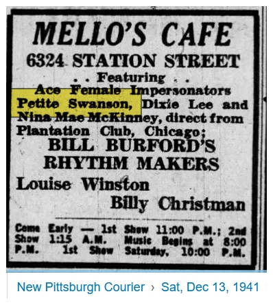 In the table card below, circa late 40's, Petite is shown with other female impersonators