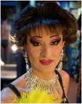 Have you noticed that almost all of the early drag artists went by male names? Well, Michelle was about the first to do her own female thing, and started performing in the San Francisco area in the mid-50s. In 1972 she starred in the first all-male production of "Hello, Dolly," and has done several large scale benefit productions, two of which were captured on albums, called "Ready or Not, It's Me" and "It's Me Again." Unfortunately though, "It's Me Again" was not released. The writers issued the album "Here's To Us," which included 9 of the songs from Michelle's two albums. Click for more. "Ready or