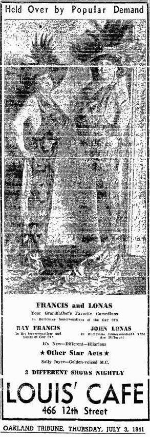 to the granddaughter of John Lonas for the clipping scans Photos From above program, click for full program From above program, click for full program From above program, click for full program From above program, click for full program Finocchio's Publicity Photos Ray Francis Below,