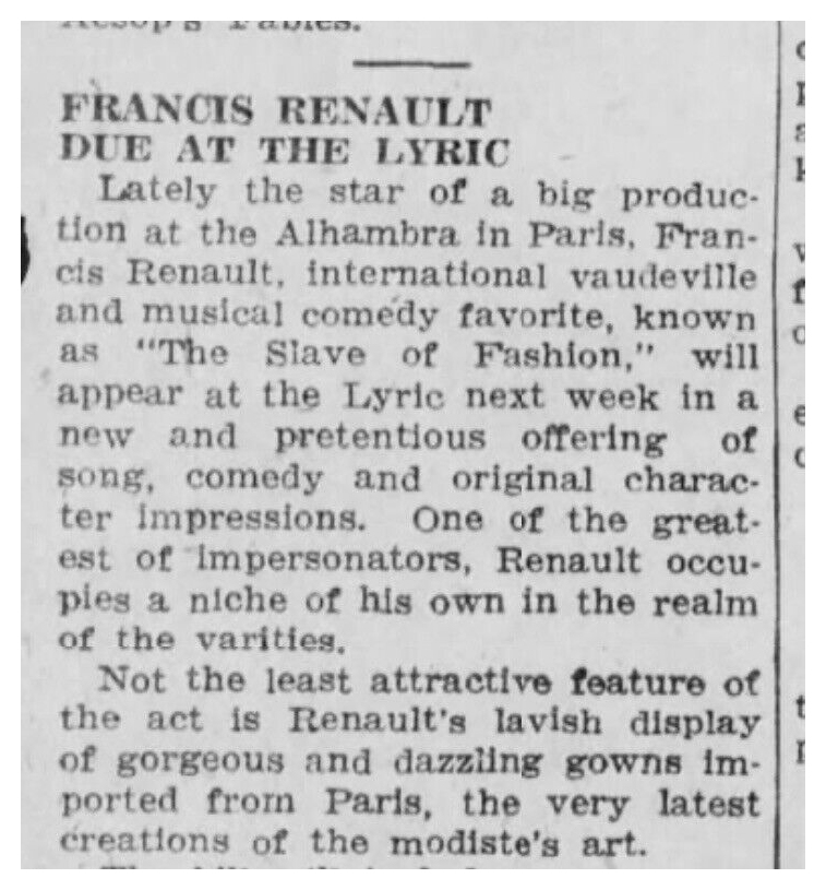 and stood at the top of his profession, along Julian Eltinge and Karyl