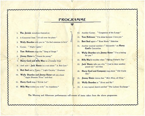 an ex-military concert party, which toured into the 1930s - possibly