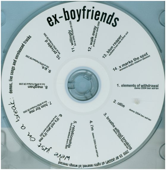 That was a long set, ending with Eric Himan and the song "Symmetry," which will be on his next album. Before that, an artist I know very little about, as he goes just by the name Matthew. He released his only CD in 2001, called "A Perfect Life." I really loved that it contained lyrically gay material, and you heard "Fireflies" and one called "Love 'Em and Leave 'Em." And directly after Sonia I played Stephen Patric, and another song I've been meaning to play for a while. "Sleepy Man" is from his 1997 CD "Love in Our Key." I did a blog last month on Animal Prufrock, who a while back was half of the duo Bitch & Animal. The solo CD was called "Congratulations, Thank You & I'm Sorry," and these two tracks jumped out at me, "Liberation" and "Cosmic Tranny." Animal