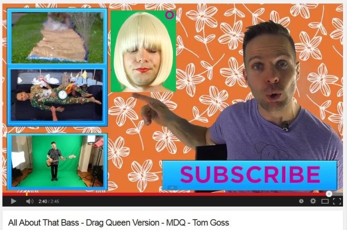 Tom Goss - All About the Bass (2014) You may have heard Meghan Trainor's very catchy song "All About the Bass." It's the perfect song and video to parody, and my friend Tom Goss did his own version, with the help of drag artist MDQ, and I encourage you to check out the video. This is JD Doyle bringing you OutRadio for December. Now, if you are expecting xmas songs, please go to my other show, Queer Music Heritage, that's where I keep them. So, onto more music and from the UK is Alex Woburn and "Stop Playing the Film." Alex