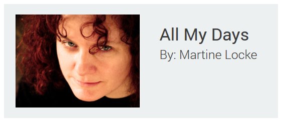 I originally started to put this next song much earlier in the show, but it just called out to me as the perfect closing song for this segment. It's by Martine Locke, a transplanted Australian now living in Indiana, and it's her latest single, called "All My Days." Martine Locke - All My Days (2014)