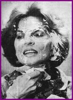 To the left, famous shots of her getting her just desserts, pie style, at a press conference |