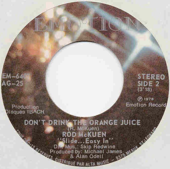 Rod McKuen's song "Don't Drink The Orange Juice" appeared on