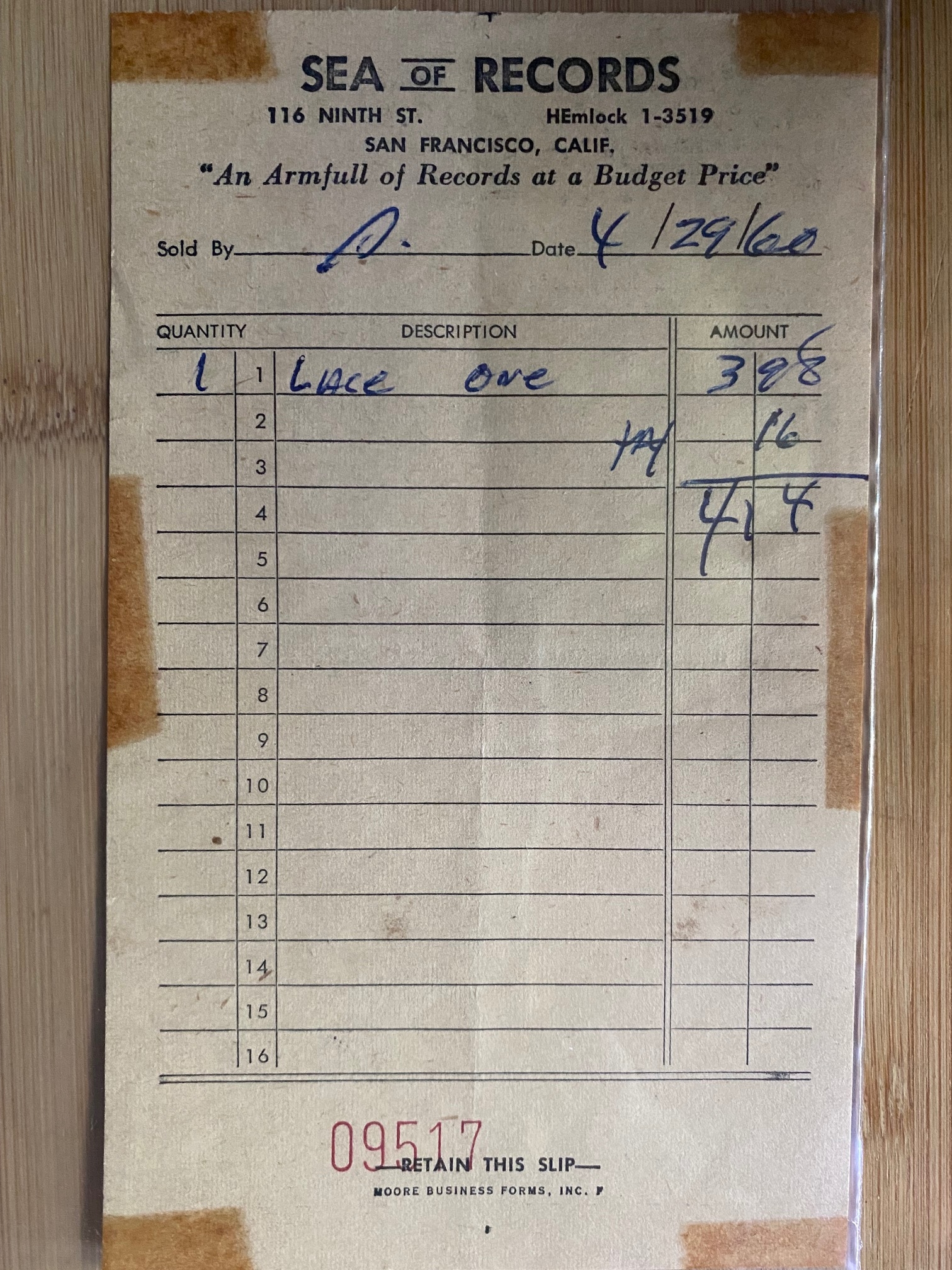 not sure at this point where I got this, but it appaears to be a receipt Album Producer Murray Garrett