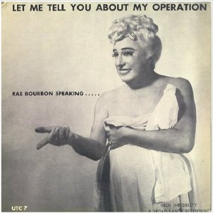 And I threw in a bit of Noel Coward in that set. And while I do not consider him as a Pansy Craze artist, he wrote the song "Green Carnation" for his 1933 musical "Bittersweet." In it fashionable gay men in England in the 1890s could be identified by their green carnations. And this is a good place to slip in the sort of recitation singing style of Ray Bourbon. He was our culture's most prolific female impersonator, with recordings spanning from the 30s through the 60s. He died in prison in Texas in 1971, but that's a whole other very colorful story. Let me give you a history reference point. In 1952 Christine Jorgensen had her famous sex-change operation, so this was still in the news. So, around 1956 Ray Boubon changed the spelling of his first name from R-a-y to R-a-e and released an album called "Let Me Tell You About My Operation," in which he played to the hilt his sex change, which was all hype, never happened. I did tell you he was colorful. Here's a bit of the title track. Rae