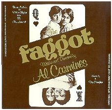 My next category is musicals, and 1973 saw the first openly gay one. I believe you would consider a musical named "The Faggot" as openly gay. Characters in the show included Oscar Wilde, Gertrude Stein, Alice B. Toklas and Catherine the Great, so I assume the plot was a bit catch-as-catch can, but it started out queer from the first song, "Women With Women, Men With Men." The