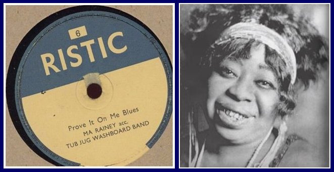 The song is "Masculine Women Feminine Men" and is by Merritt Brunies & His Friar's Inn Orchestra. That version is from the UK and is one of 15 recordings I know of that song. And that song of course was not done by gay or lesbian artists, and back then the B and T of LGBT were not even talked about. I'll be keeping almost exclusively to artists who actually were gay, lesbian, bi or transgender, and I guess I should pause a moment and acknowledge that I talk about queer music like everyone knows what that means. I've got a study guide for this show on my site, where I much expand on the subject, but for right now, I'll say it's music that speaks openly about the LGBT experience. And to me the obvious place to start is 1928 and the Blues, and the obvious song is by the Mother of the Blues, Ma Rainey. It's the "Prove It On Me Blues" and is a Blues classic and often recorded. Listen for my favorite line in the song, "I went out last night with a gang of my friends, they must have been women, cause I don't like no men." Ma