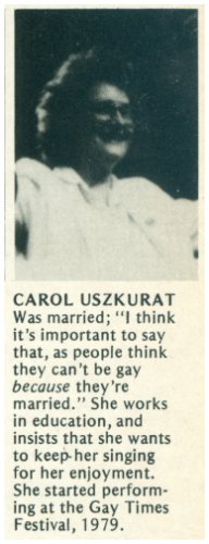 Lavner - First Dyke on Dynasty (1986) Lots of history in those last two tracks, and the iconic Tom Robinson is connected to both of them. In 1982 a concert was recorded benefiting the London Gay Switchboard, with a bunch of artists and Robinson being the main draw. Of course he sang "Glad To Be Gay," but for this show I needed a dyke song and there was one in the concert by long time lesbian educator and activist Carol Uszkurat. She sang "What's It Like To Be a Dyke?" The next song was "A Dyke's Gotta Do What a Dyke's Gotta Do." On that one Tom Robinson provided backing vocals to Jill Posener, who is not at all known as a singer, but the record was also a benefit one, this time for London's Gay Pride, in 1979. Posener has a long resume including being a Lambda Literary Award winning editor, an author, photographer, and was the first female member of Gay Sweatshop, Britain's first gay professional theatre company; and she wrote the company's first lesbian play, Any Woman Can, in 1974. Again, lots of history. And here's one more UK recording and the song was sung live at the London Gay Pride in 1979 that I just mentioned. But I need to back up in the artist's history as she was a popular artist in the early 60s, when girl singers were the rage in the UK, and she released a number of now very hard to find 45 rpm recordings. Anyway the singer was named Polly Perkins, and the track is from 1976. I did a feature on her a few years ago and she told me the song was only on a cassette and only sold at gigs and at the lesbian nightclub she had then, so this is very rare. Now the recording quality is not studio quality, as it's a demo but it's too historic not to share it with you. It's called "Superdyke." A side note, when she sang the song at Gay Pride in London in 1979, Polly was booed off the stage by the politically correct lesbians, because she was wearing lipstick and hot pants. That may have been prior to the phrase "lipstick lesbian." Again, here's "Superdyke."