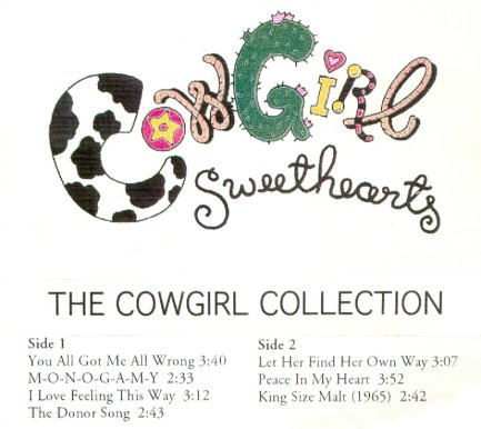 Howard - Something About Her (1989) And the Cowgirl Sweethearts gave us that song about bathroom confusion. "You Got Me All Wrong" was from their 1994 cassette called "The Cowgirl Collection." And here's a very rare song by one of the most beloved singers of the Women's Music Movement, Meg Christian. What makes it so very rare is that it was on the very first record released by Olivia Records, a 45 rpm one, and the song appeared on no album. Also unusual is that it was a cover song. So here's Meg singing the Carole King song "Lady."