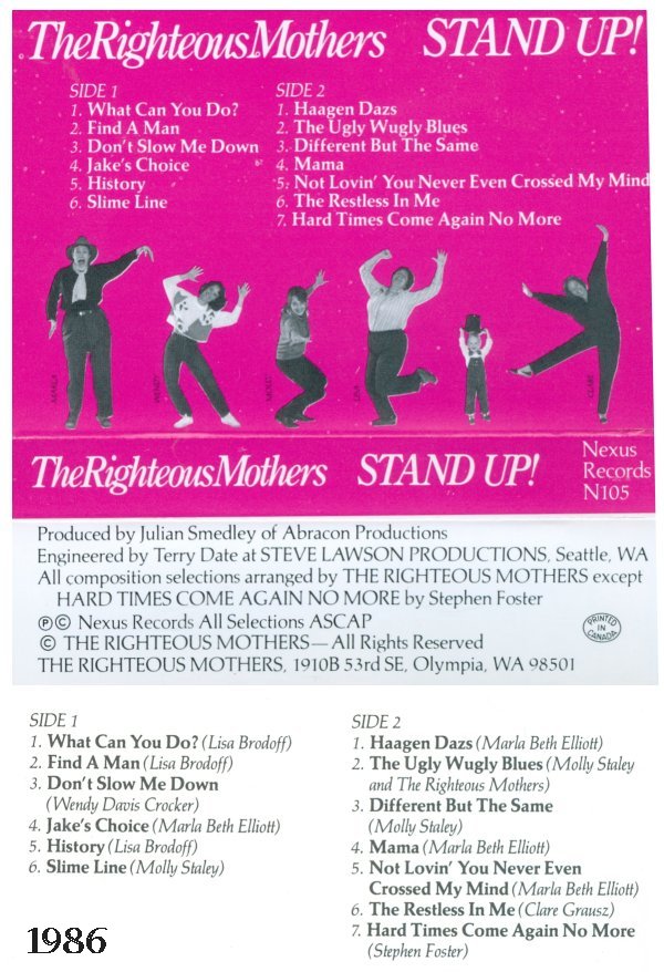 Little Bits - My Folks Are Coming to Stay (1980) That was The Righteous Mothers, praising the glories of "Haagen Dazs," done 60's style, from their 1986 album "Stand Up." And up next another UK singer followed by a Dutch band that was the first out of the closet lesbian rock band in Europe.