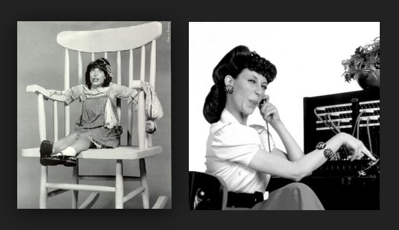 Quilla II - Angry Young Woman (1982) Click for larger LP and liner note scans for Mama Quilla II and Miki Wagner Again, in that set the first act was Mama Quilla II, and shortly after that release, in 1982, the lead singer Lorraine Segato and the drummer, Billy Bryans, joined with others to form Parachute Club, one of the most popular Canadian bands of the 1980's. And the second song of that set was the very lesbian-specific "Normandy," from Miki Wagner on her 1981 LP called "Infatuation." And I couldn't resist playing another song from that album, her cover of the Joe Jackson song "Is She Really Going Out With Him." Lily Tomlin - Edith Ann on Lesbians / Doris Gay (1974)