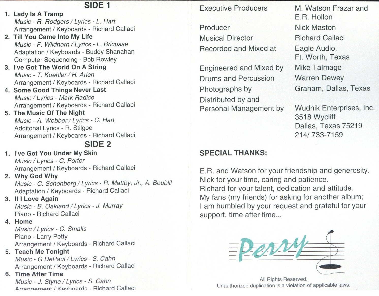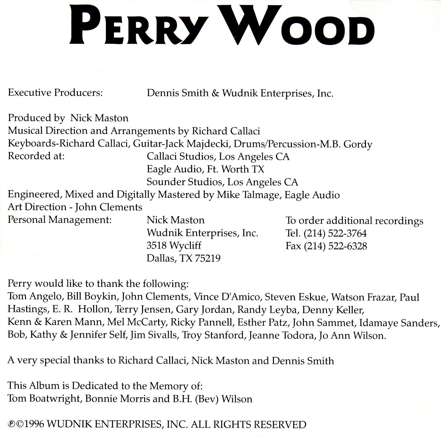 Perry Wood 1996 CD, Listen to "Love Don't Need a Reason"