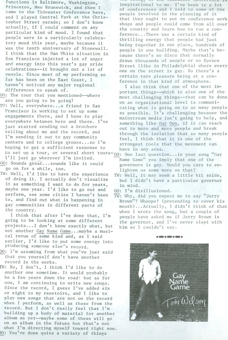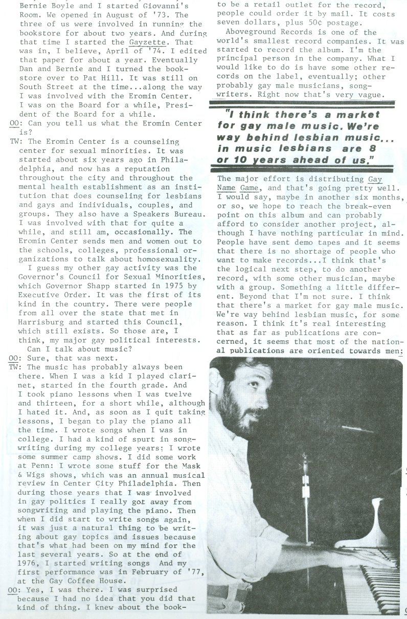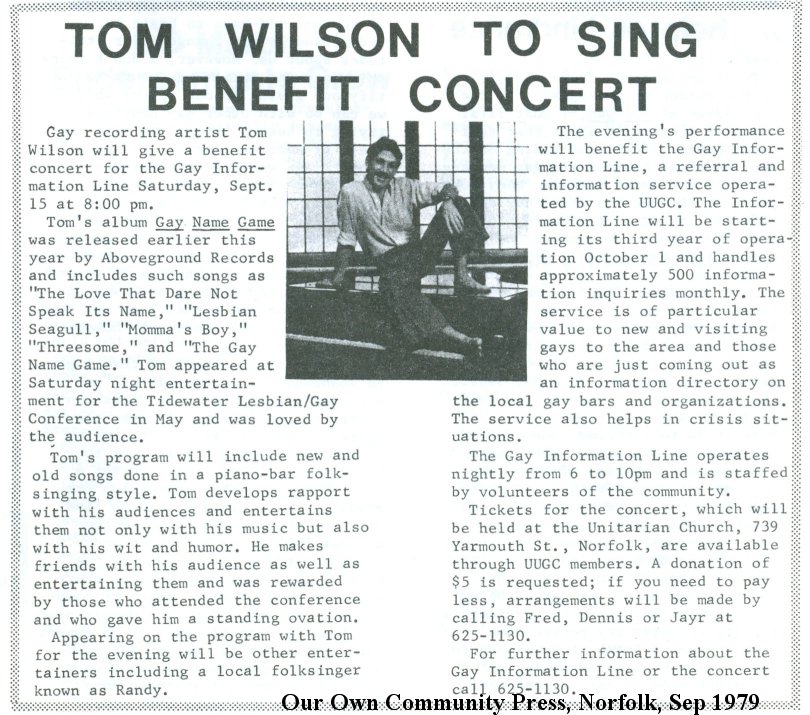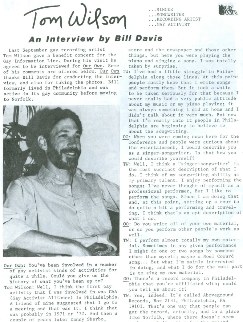 from Philadelphia very-gay singer/songwriter Tom Wilson (he later