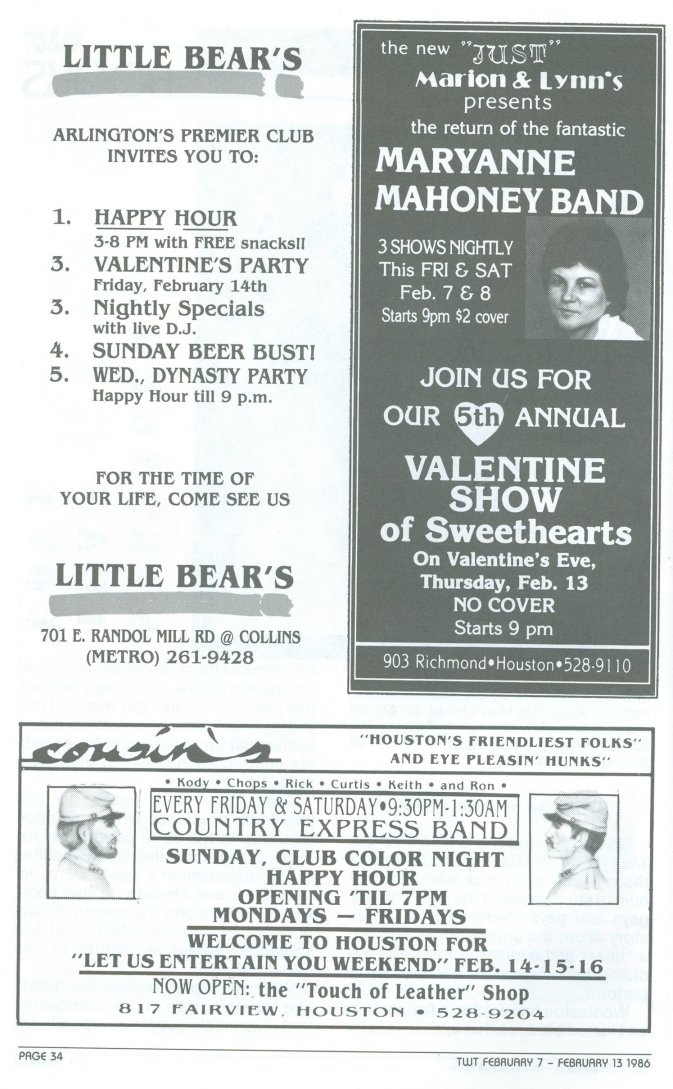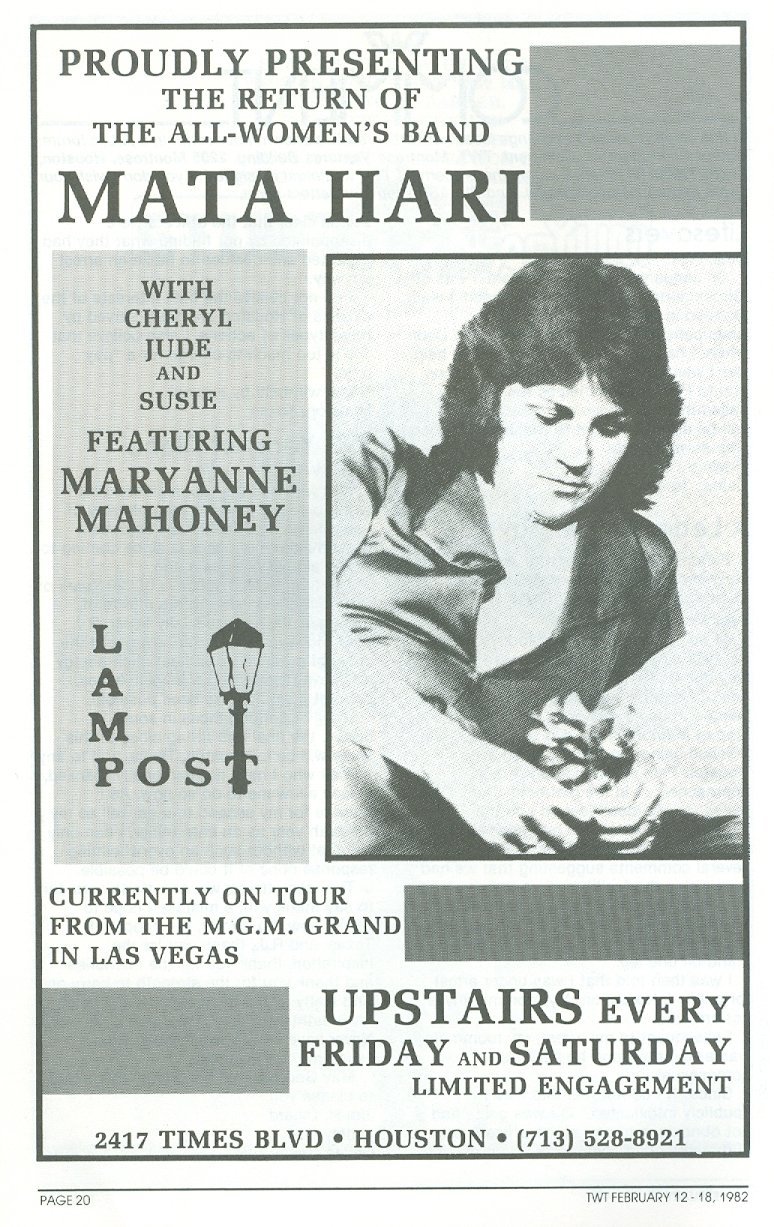 I did find that she performed at some lesbian clubs in Houston in the mid-1980's