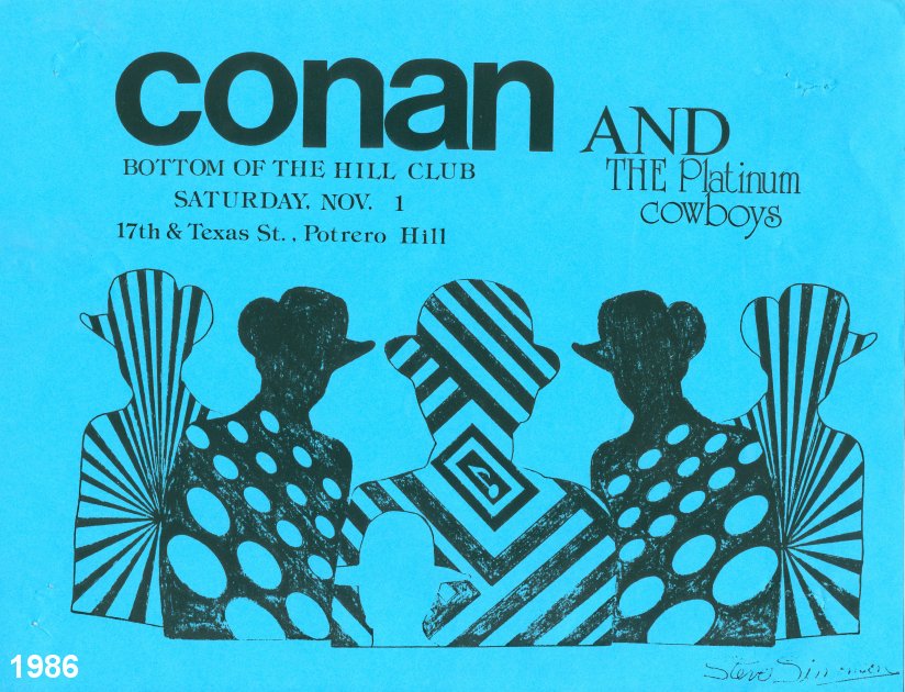 Below, two 1986 flyers for Conan gigs in San Francisco