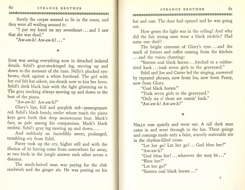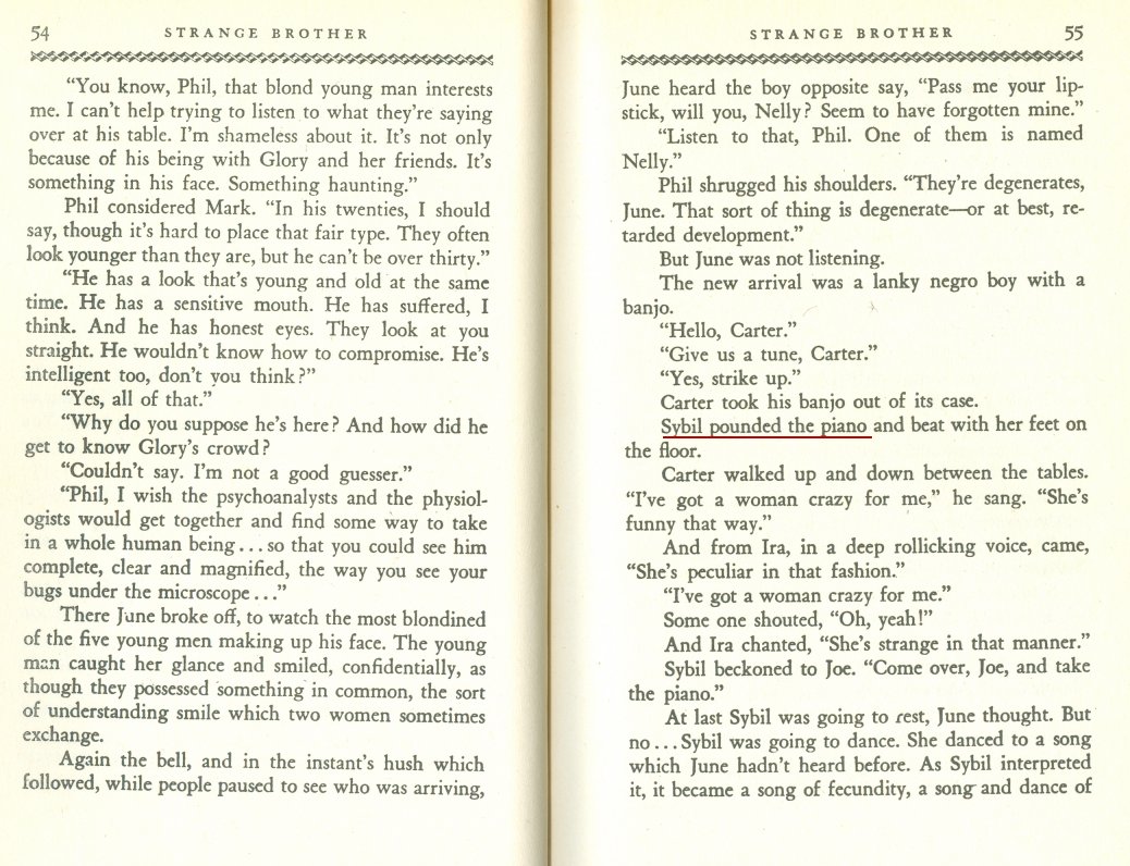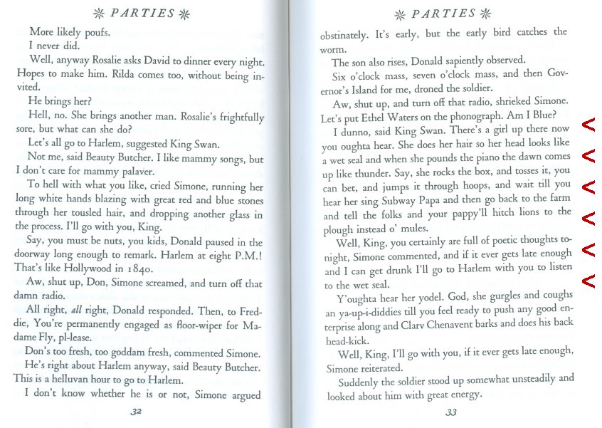 Bentley reportedly "married" a woman, with her in a tux and the woman in wedding dress. And, on page 59, Bentley was known for singing "St. James Infirmary."