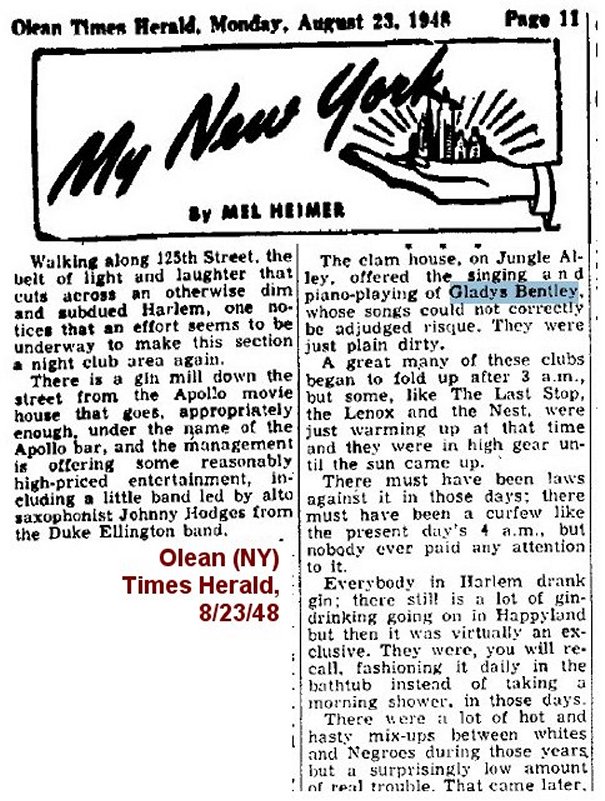 Above, article lamenting nightlife of yore....mentions Bentley, Read it All