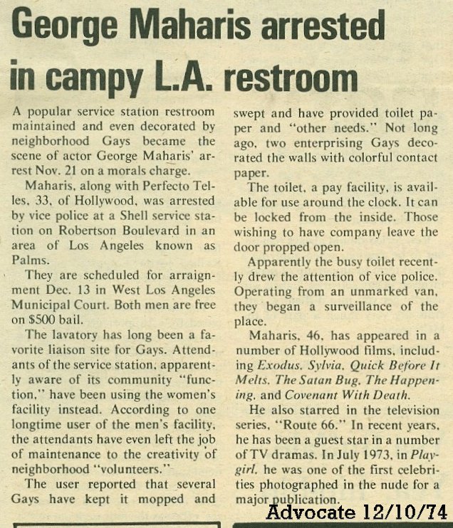 Back to Queer Music Heritage Home Page More on George Maharis... just some of those teen magazine articles, those Playgirl photos, and some trivia