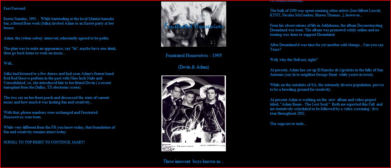band Adam Baum & the Frustrated Housewives is sadly no more, and