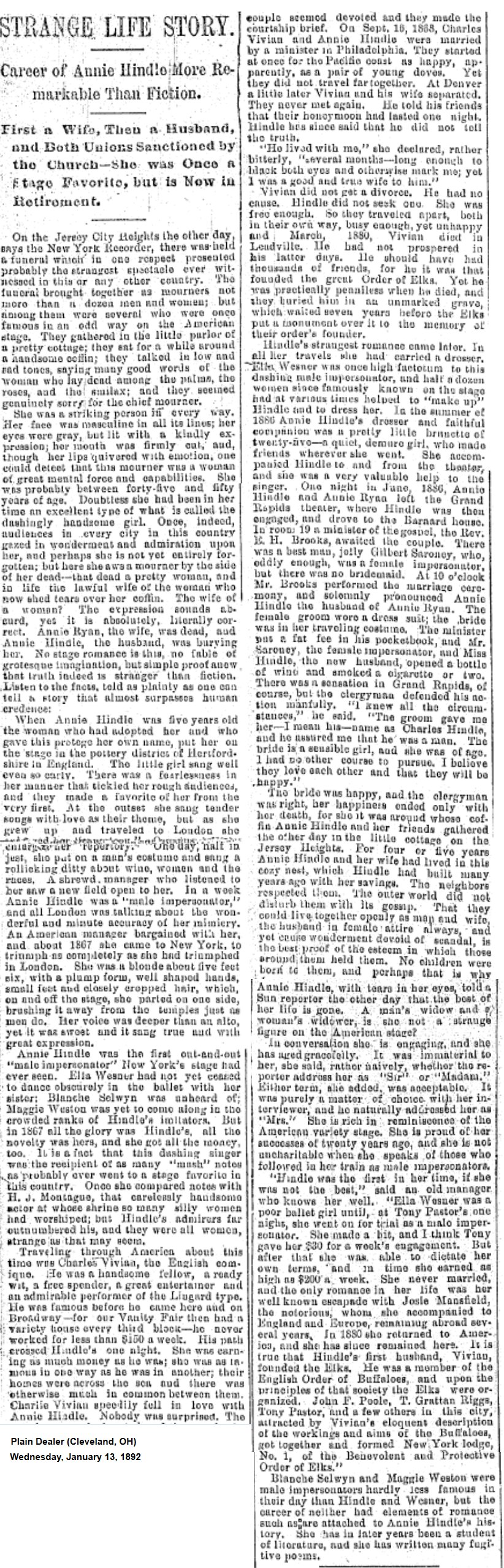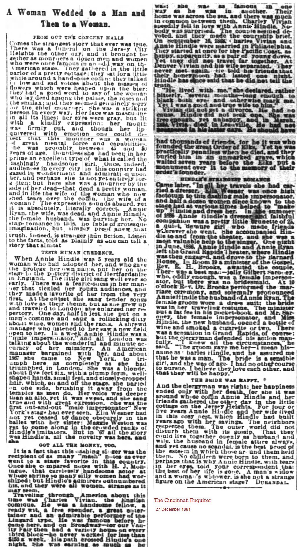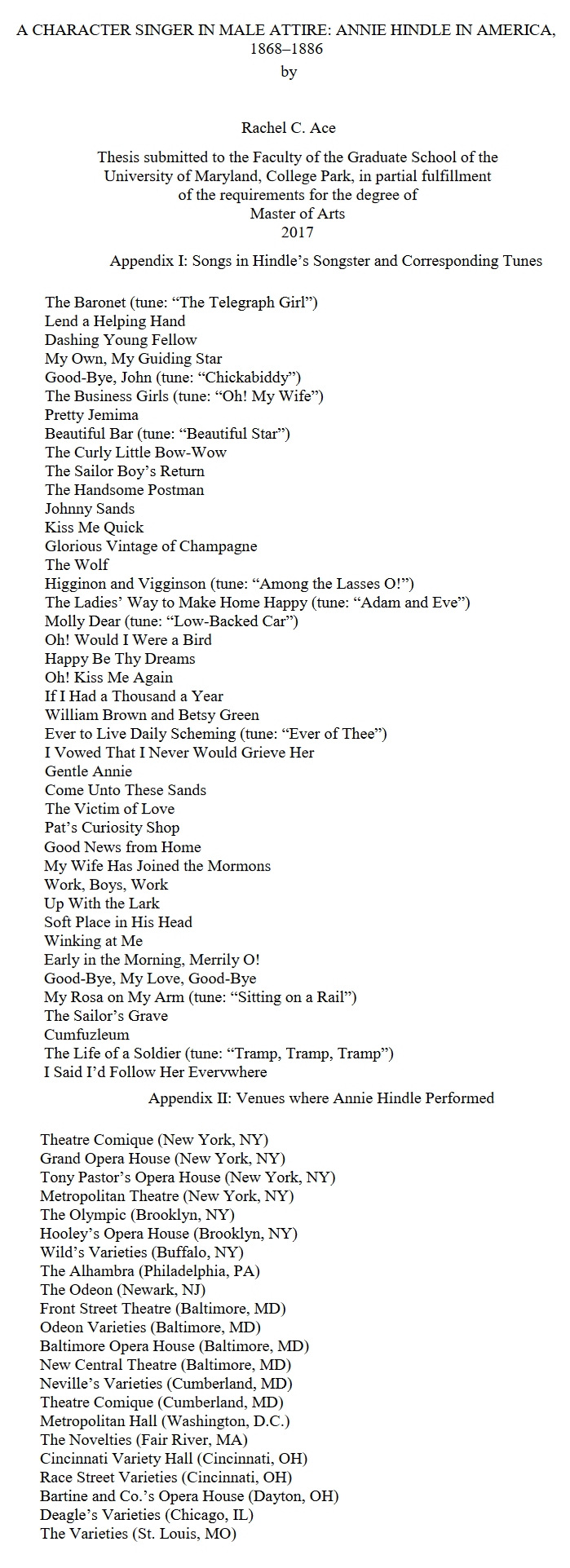 Back to Female Impersonator Sheet Music Intro Annie Hindle 1847- 1897
