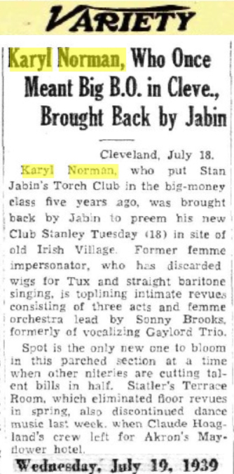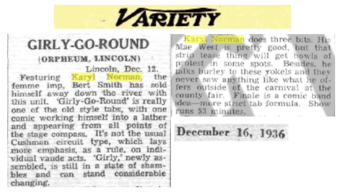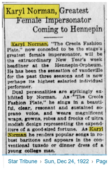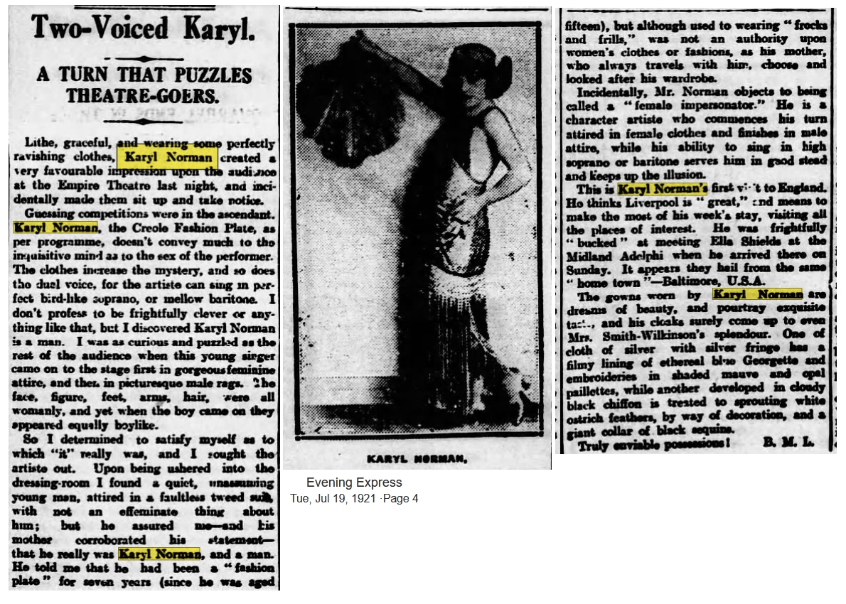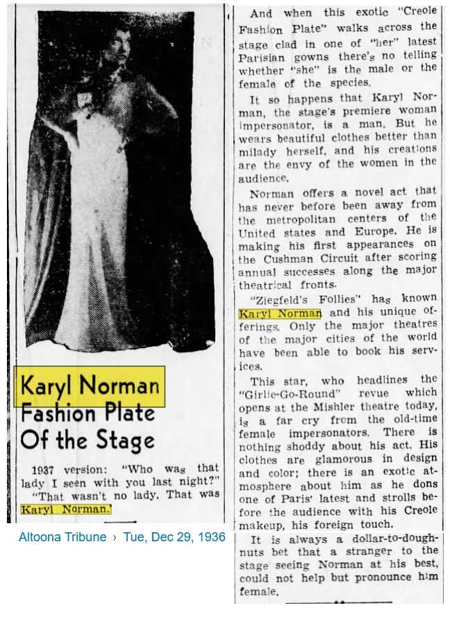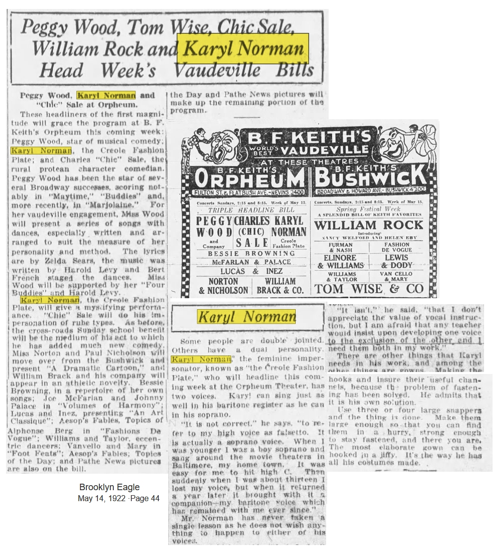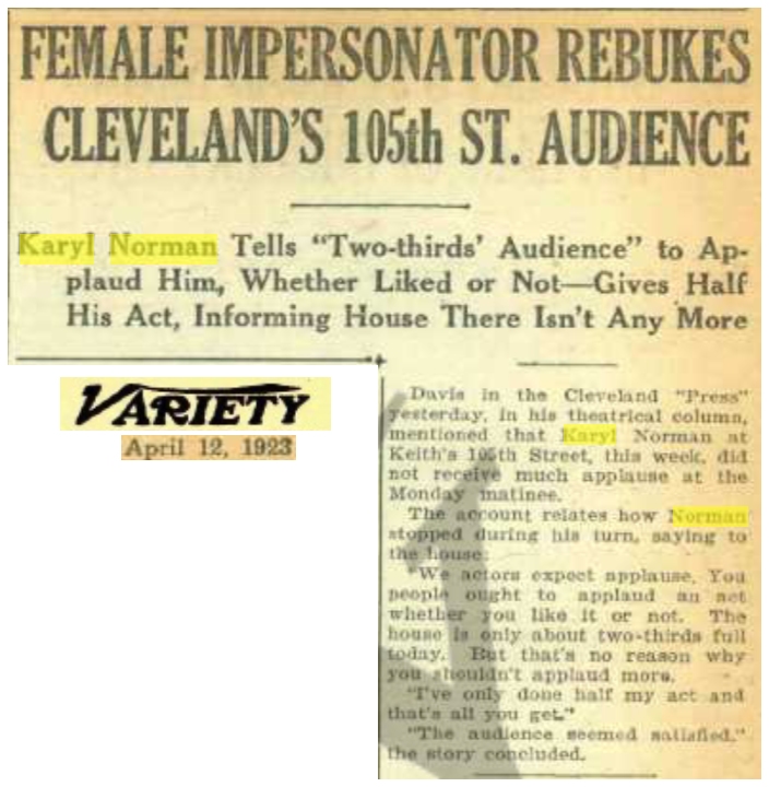 Back to Female Impersonator Sheet Music Intro Karyl Norman