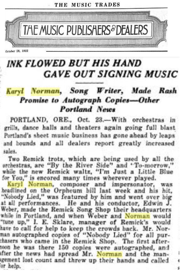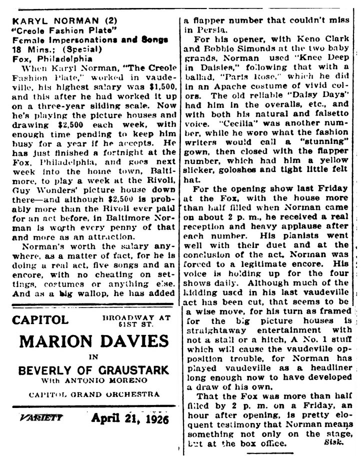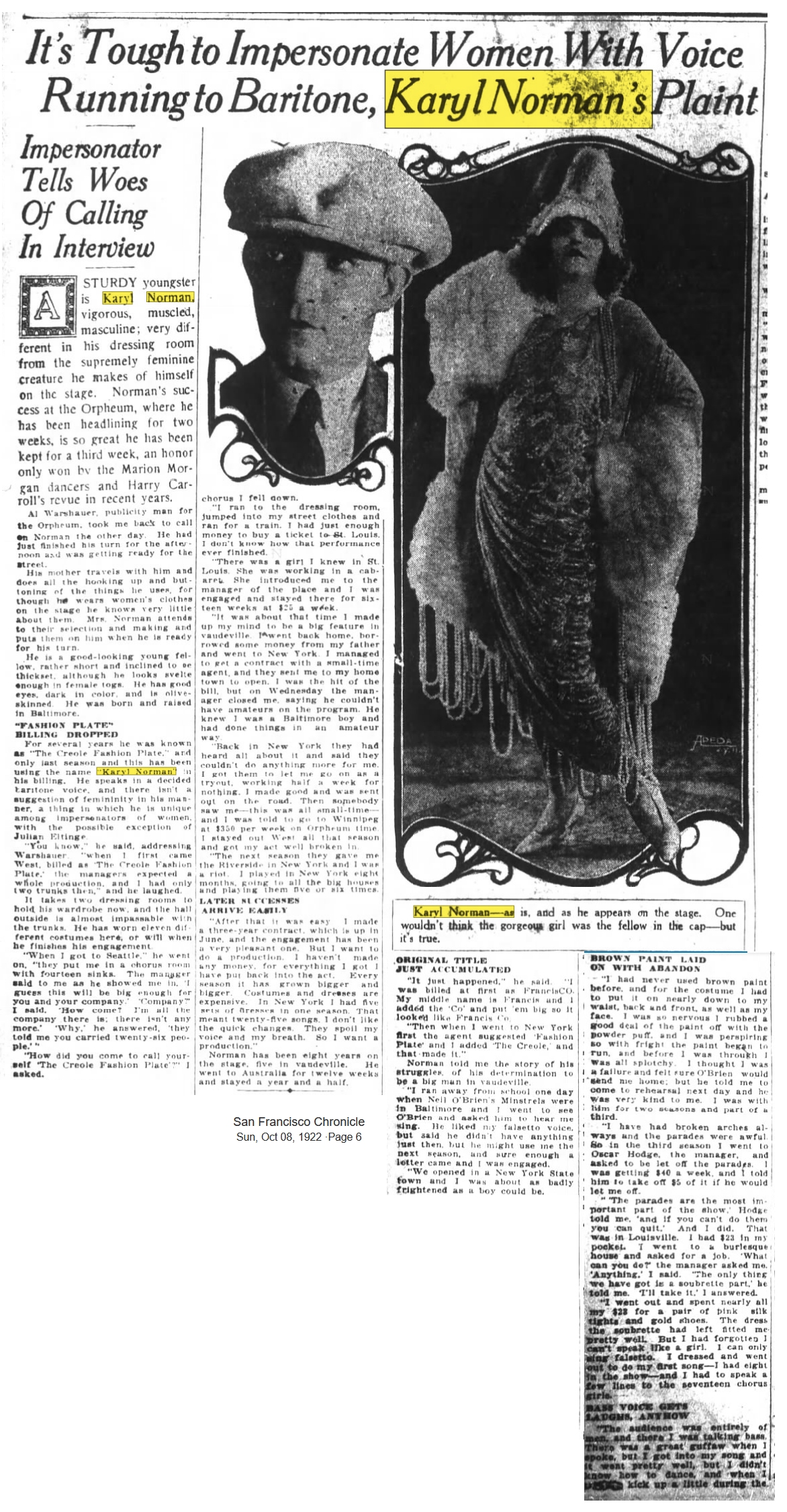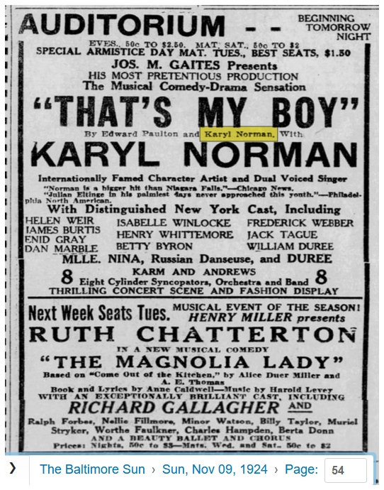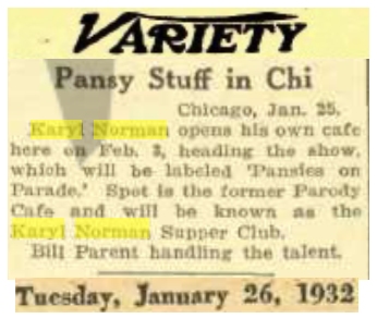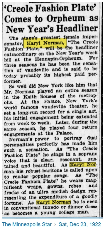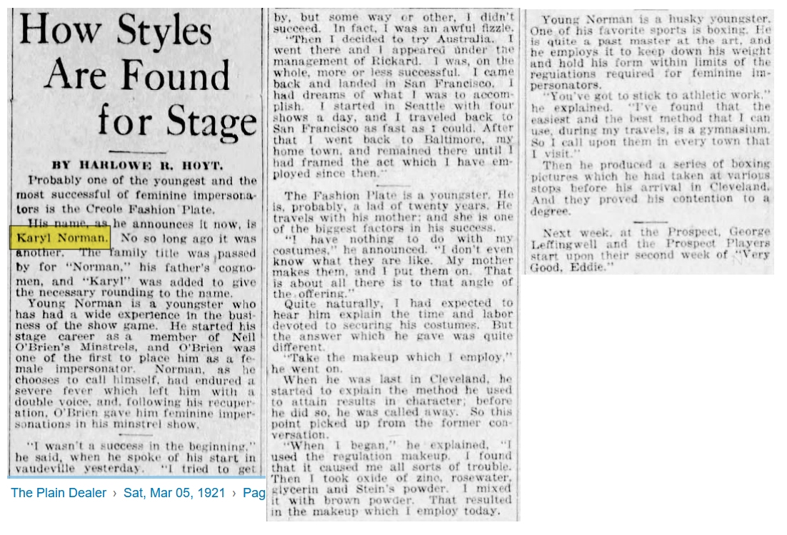 Back to Female Impersonator Sheet Music Intro Karyl Norman