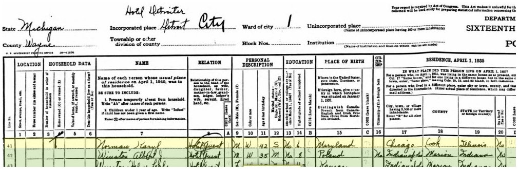 Karyl Norman in 1940 Census (Detroit)