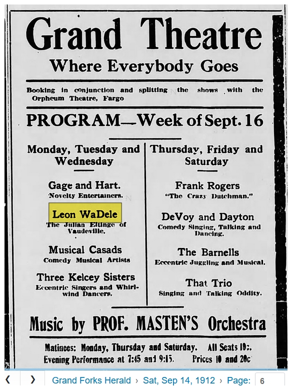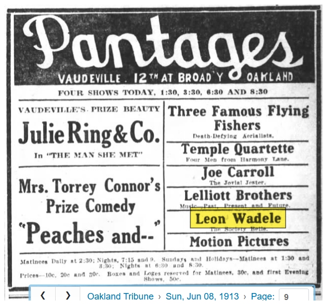 Clippings 1912 He mostly performed in the midwest (Missouri, Kansas) and San Francisco