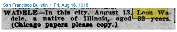only the years 1912 through 1917, and his obit in 1918. I only found