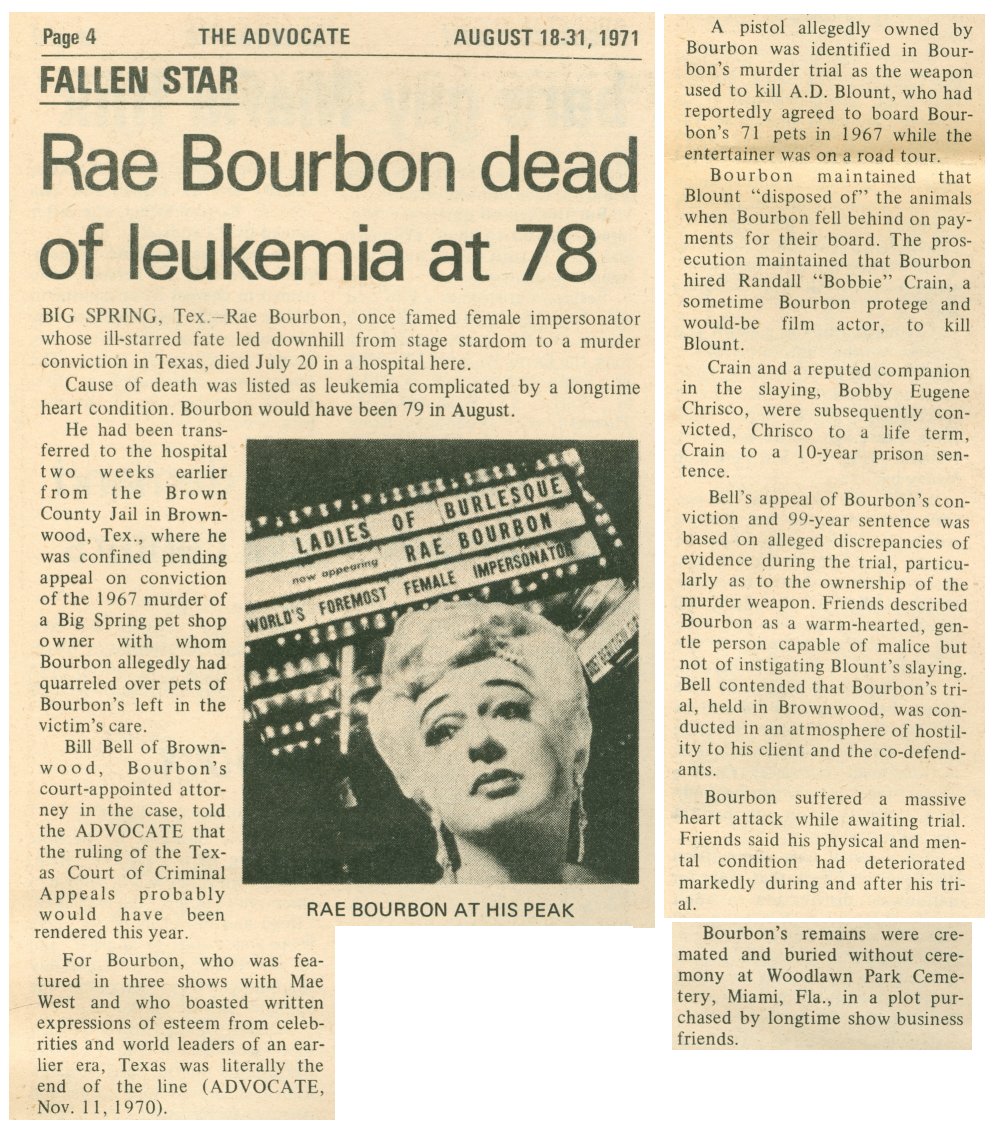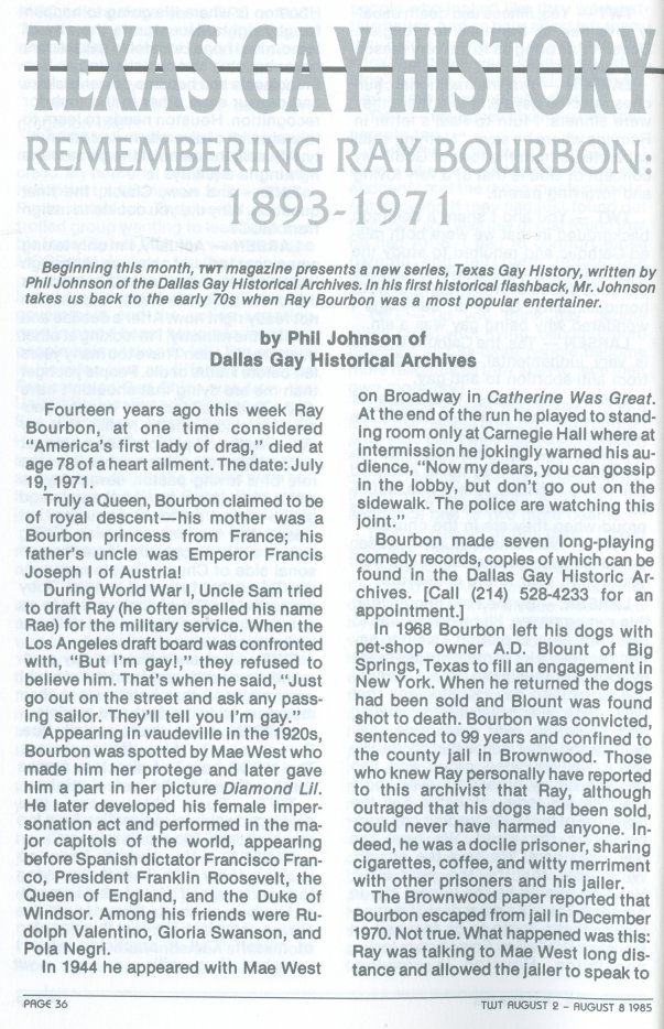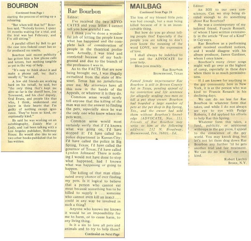 News Articles on Ray Bourbon