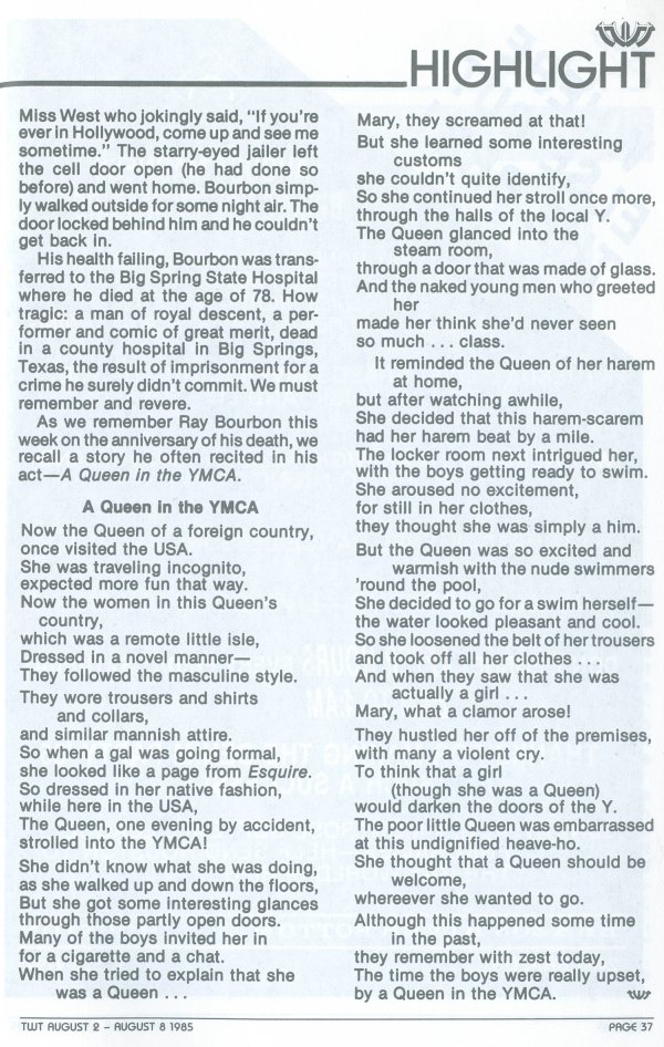 From Gay Newspapers, Below: