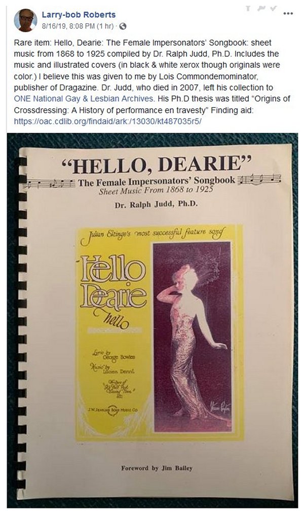 AND Browse the Cornell University Postcard Collection Hello, Dearie: Female Impersonators' Songbook