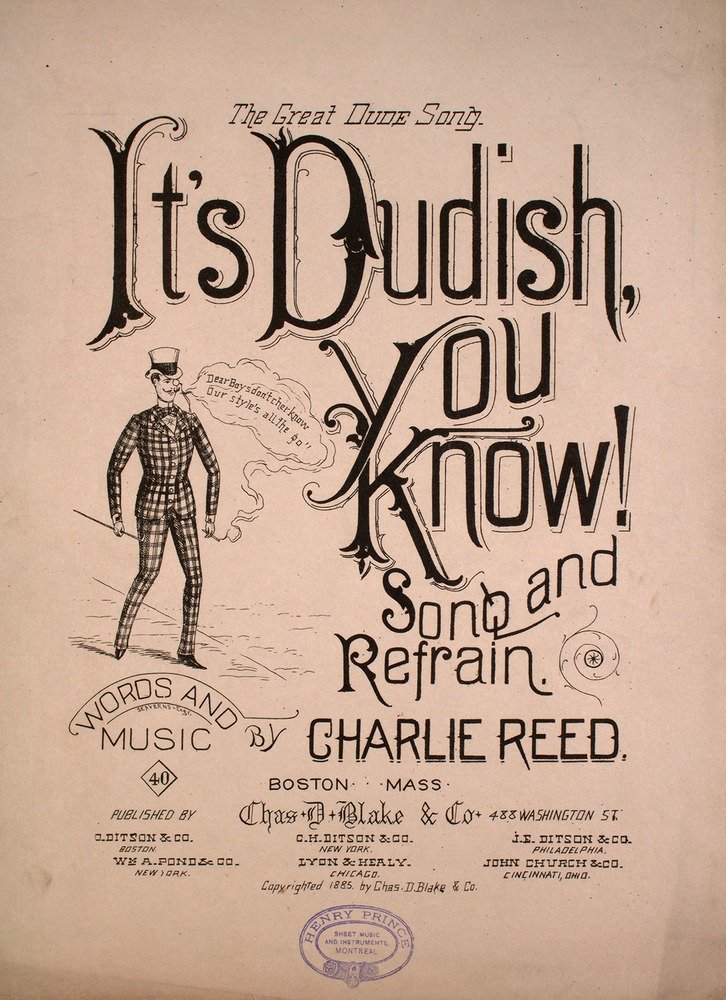 Here's some sheet music about the guys.... In the 1880s there were many songs about Dudes, those young effeminate dandies...like this one... The