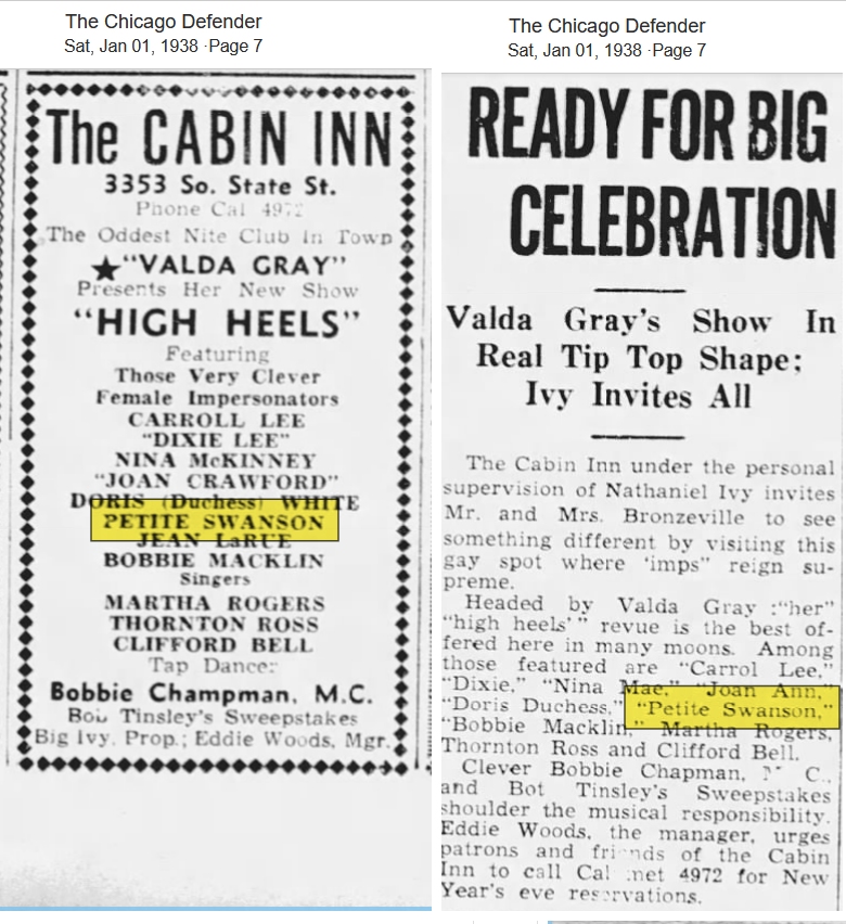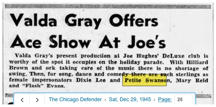 Swanson was a member of Valda Gray's troupe of female impersonators,