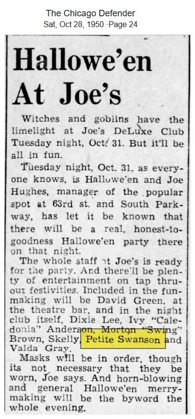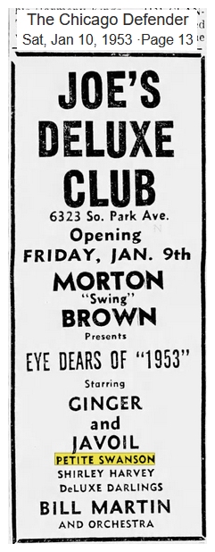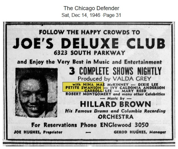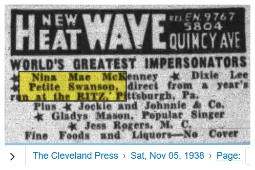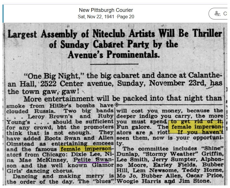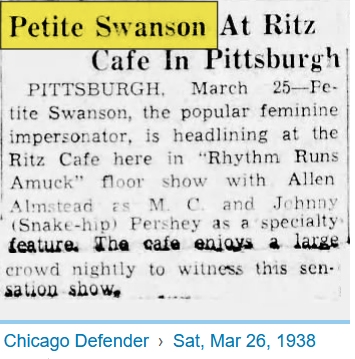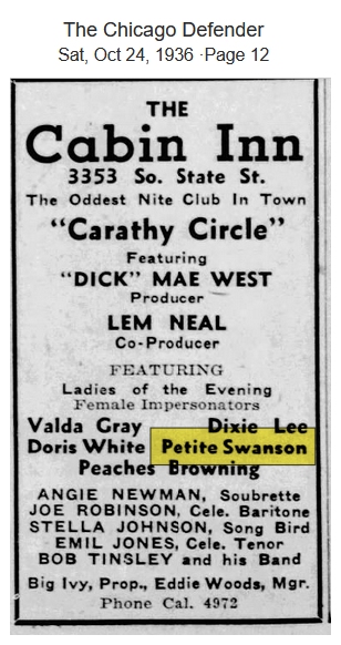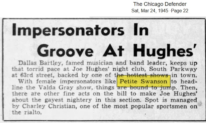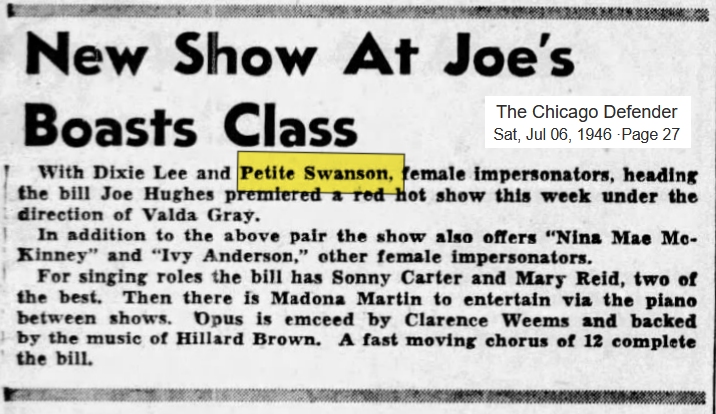 In the table card below, circa late 40's, Petite is shown with other female impersonators