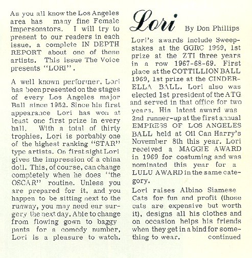 Below, an artist named Lori, from the Voice (L.A.) 1971