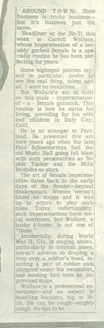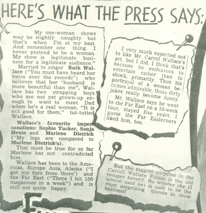 Click to see above Carroll Revue Program, 1956 Click for Carroll Wallace Clippings Carroll Wallace Revue photos
