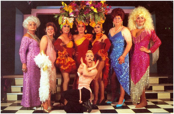above (circa 1974), Left to right: The Eve-ettes (in green),