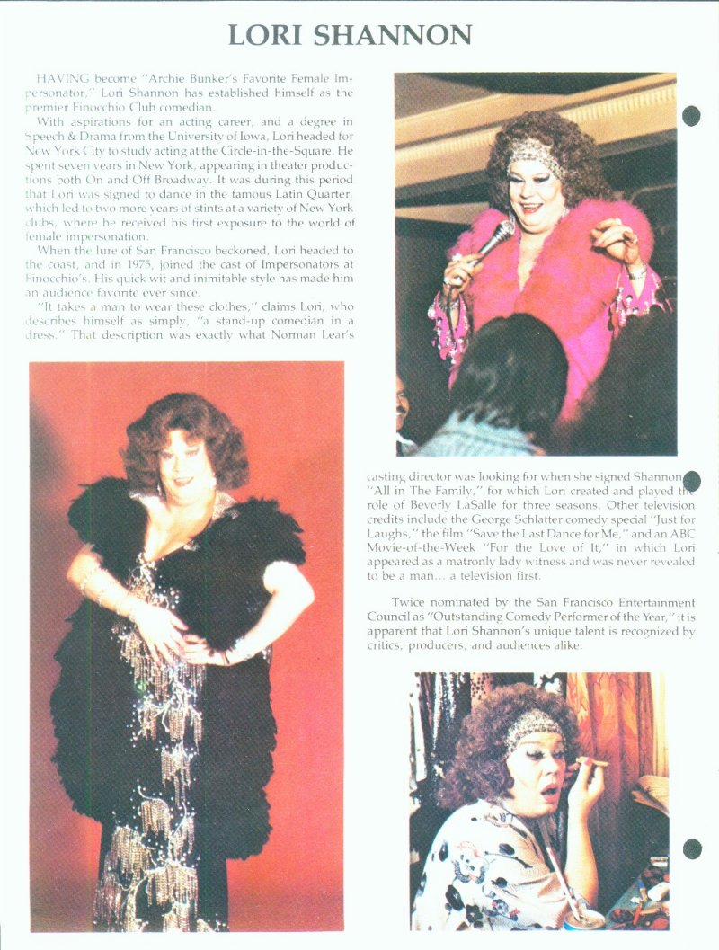 With: LaVerne Cummings, Carroll Wallace, Lori Shannon, and the Finocchio's Eve-Ettes