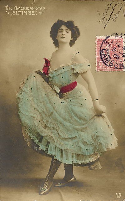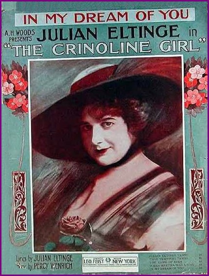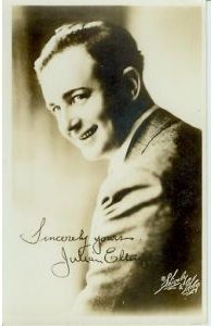 Julian Eltinge ... From the wonderful website: The Julian Eltinge Project To paraphrase Winston Churchill speaking of that other security curtain (the Iron one), Julian Eltinge's life remains a mystery wrapped in an enigma. The details of his vaudeville and stage career, and his films, are for the most part readily available. But the facts of his personal life, from his birthdate to his cause of death are either ambiguous or contradictory. Some of this is due to Eltinge's own mythmaking, and his fervent desire to quell any gossip about his possible homosexuality. "I am not gay, I just like pearls" he has said. But this statement in itself is a bit of a give away. Eltinge had been dubbed by some critics as "the queerest woman in the world" and "ambisextrous". Eltinge worked hard to create an image of absolute 'manliness', with public displays of horseback riding, smoking cigars, cursing, endless engagements later broken off, fights in bars (usually 'arranged'), and a bout with 'Gentleman' Jim Corbett that was splashed across newspapers. While there is little hard evidence of his sexual persuasion many of his contemporaries assumed he was gay. Brooks Peters, ("GAY DECEIVER", OUT Magazine, December 1998) quotes Milton Berle: "In the days of vaudeville I did shows with some of the greatest female impersonators, Karyl Norman, Bert Savoy, and Julian Eltinge. Of course, I worked with straight men too". In an article in the Boston Globe, Jan. 9, 1909 the wife of a sportswriter finds a photo of Eltinge as a woman in her husband's coat pocket signed 'Jules' and becomes enraged. To prove his innocence the sportswriter takes his wife to see Eltinge perform. But she is not any the happier for it, especially when Eltinge and her husband then go off together 'to the fights' while she goes home. Reading between the lines it is possible to suppose there was more than a casual relationship between the two men. Brooks Peters also notes that Norman Cohen, Professor Emeritus of History, at California's Occidental College, writing a biography of Eltinge, was told that Eltinge's true passion was for a male sax player in his band. And, there is the rumored affair with Rudolf Valentino. In any case Julian kept himself well in the closet, or at the least, guarded his secrets well.