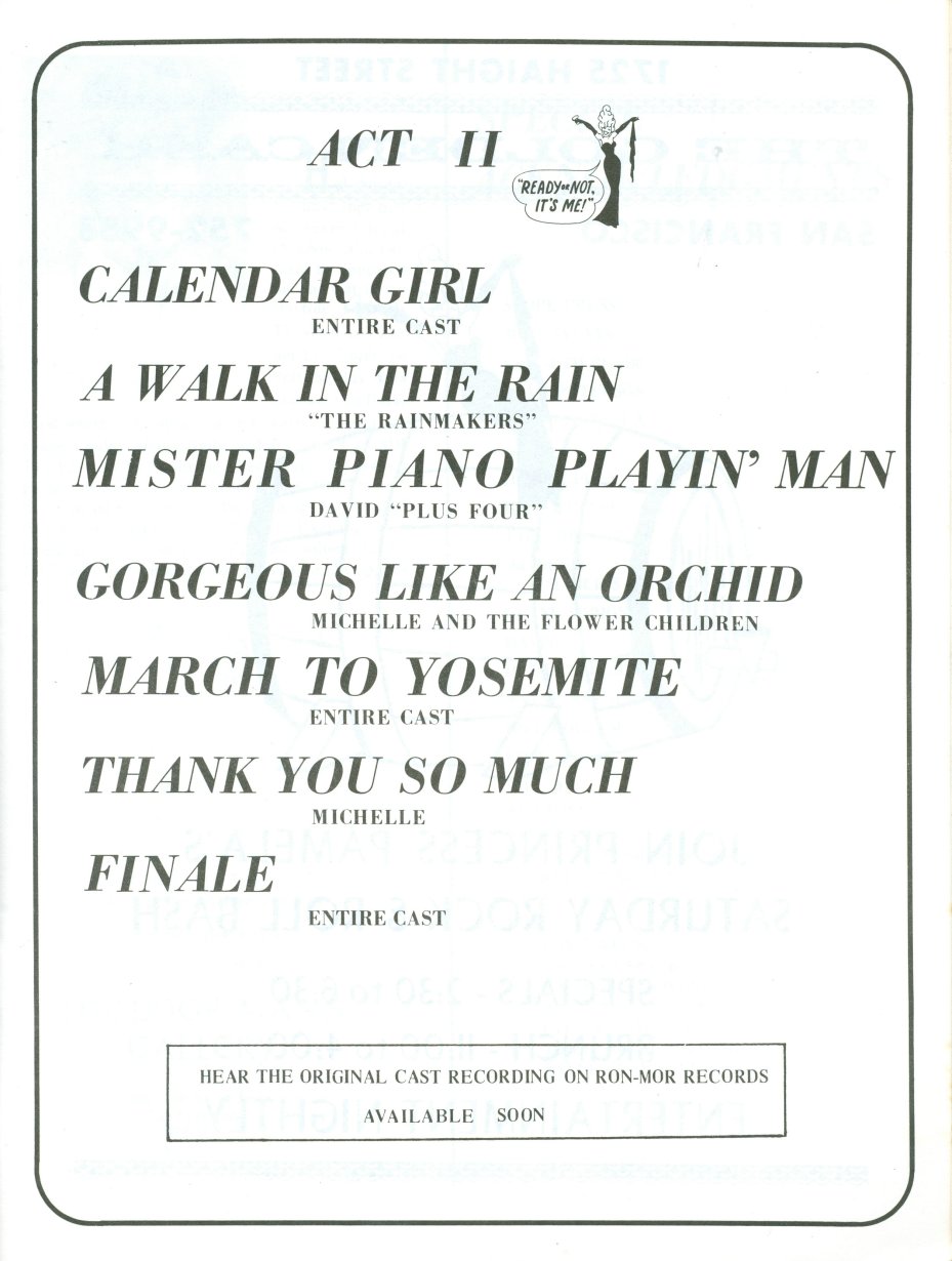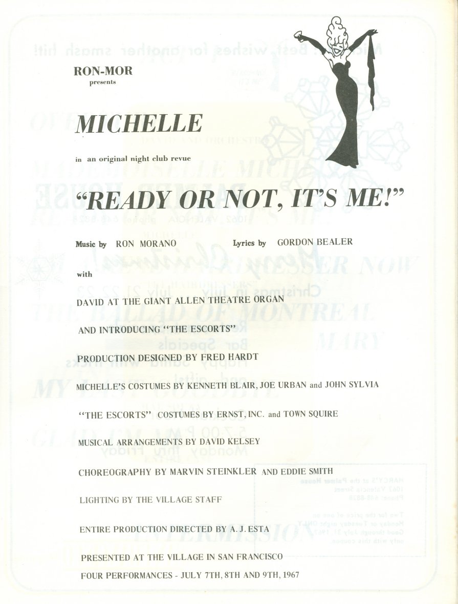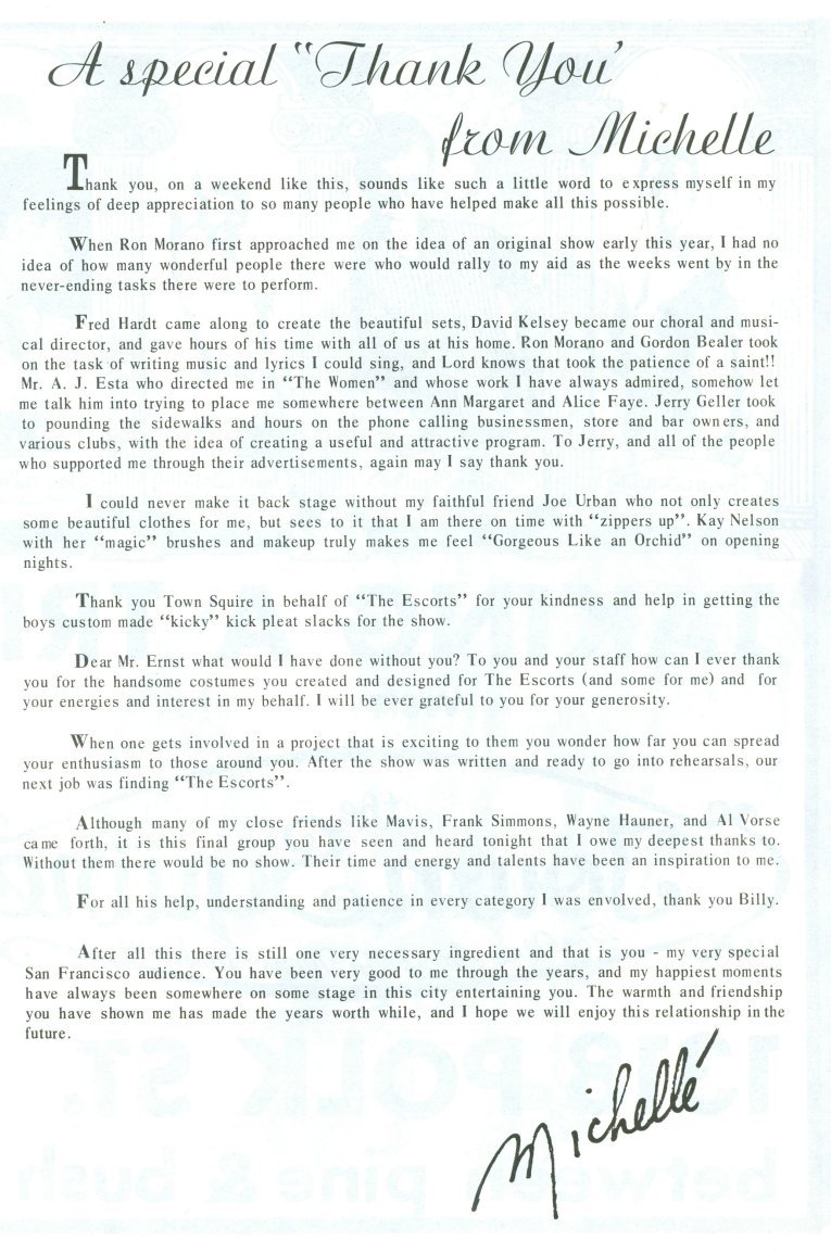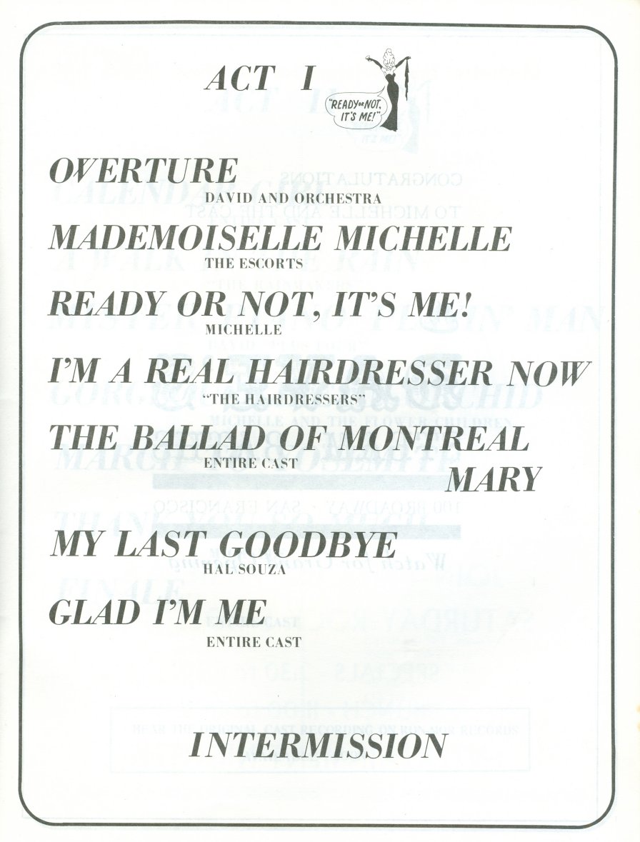 As this was a program for an event, there were also ads, about 20 pages, that I did not scan, as they were just of the "The Tavern Guild Congratulates Michelle and the Cast" nature