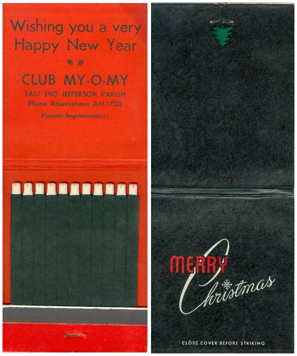 paperweight apparently made from the above postcard Below on Conti Street Matchbooks