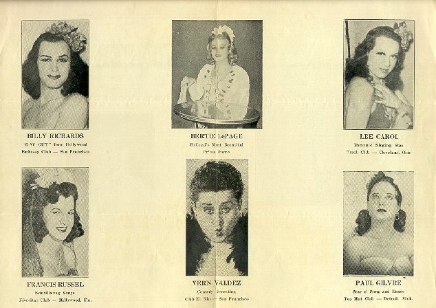 Art Sherrick, Billy Richards, Francis Russell, Bertie LePage, Vern Valdez, Lee Carol, Paul Gilvre, Francis LaVerne